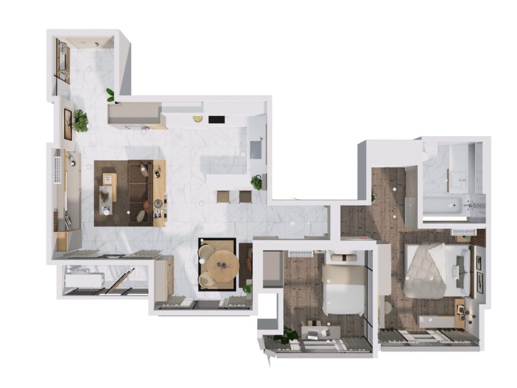 SQ Residence - 2 Bedroom - Desain 1 Minimalist Style 2 Bedroom 93 m2 Jakarta Apartemen Mengenai Desain Apartemen ini: iDekore mengusung konsep modern minimalis untuk membuat unit apartemen ini terlihat maksimal dari segi fungsi dan pemanfaatan ruang. Layout Ruangan Enquire Now for a Personalized Interior Solution! Enquire